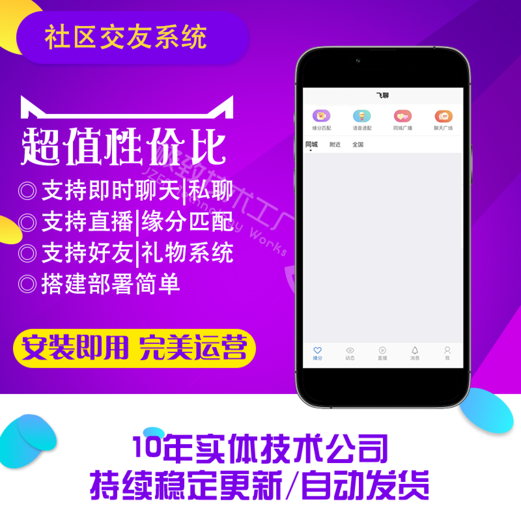文章标题:社区交源码 支持聊天聊-礼物系统-直播系统-缘分匹配+搭建教程【C20】