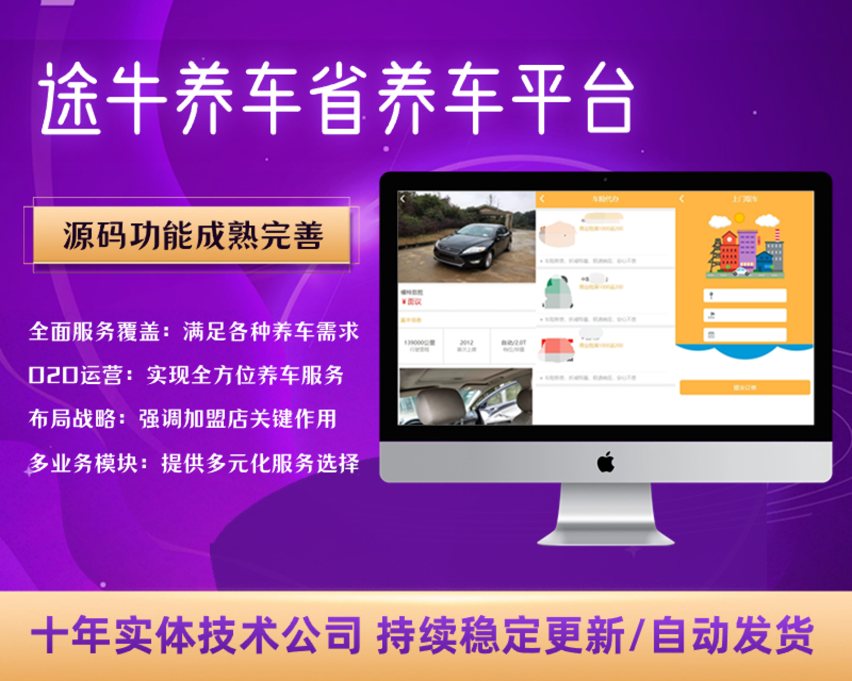 养车平台源码买卖新车租车二手车维修装潢共享O2O程序源码