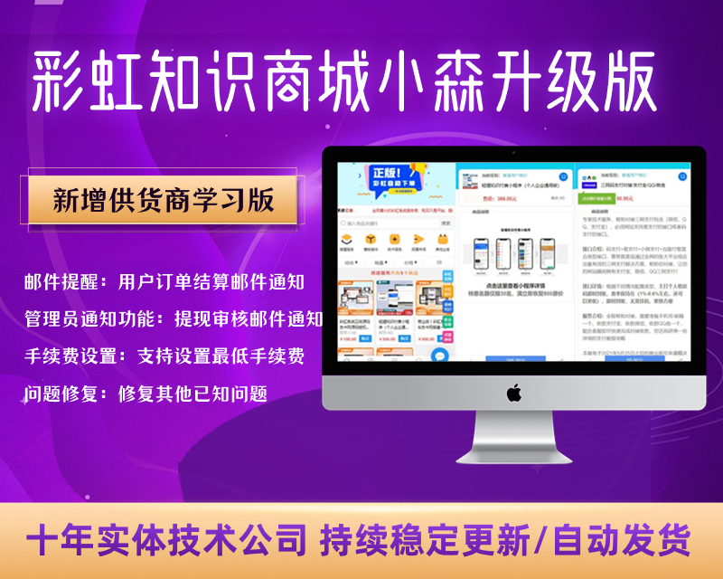 文章标题:彩虹知识商城7.0.3小森升级版新增供货商开心学习版【C97】