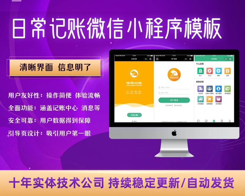 一款实用的日常记账微信小程序模板下载。包含:引导页、登录、记账中心、消息、通讯录、个人中心等模块。
