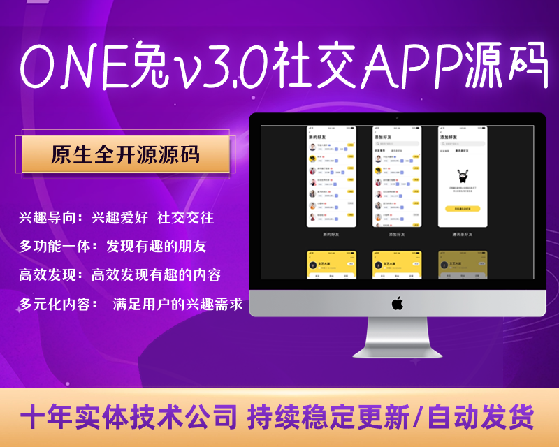 文章标题:最新ONE兔v3.0版/婚恋/交友/社交APP/原生手端源码【C124】