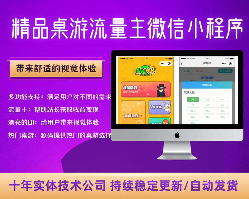 文章标题:精品桌游流量主微信小程序源码【C235】