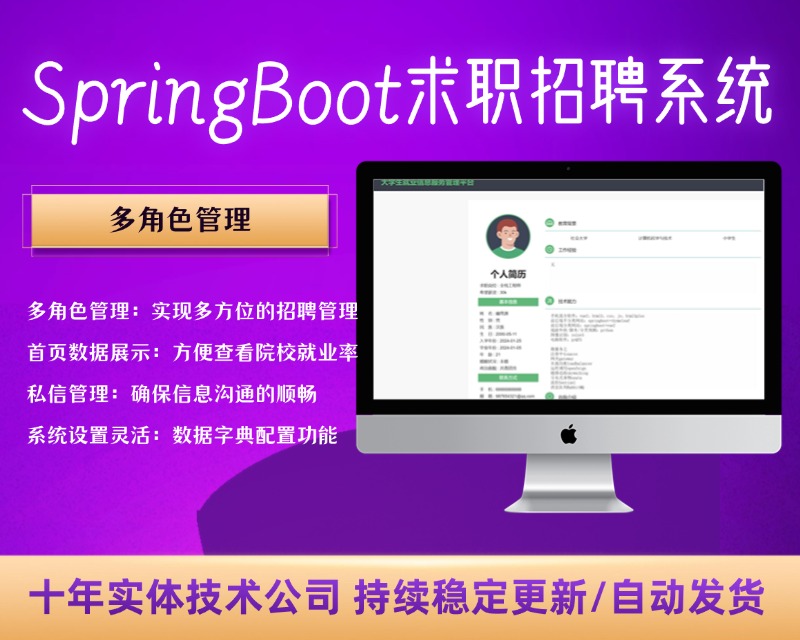 求职招聘系统,是基于SpringBoot+Thymeleaf框架,专为管理员、企业和学生用户设计的多角色招聘管理系统。