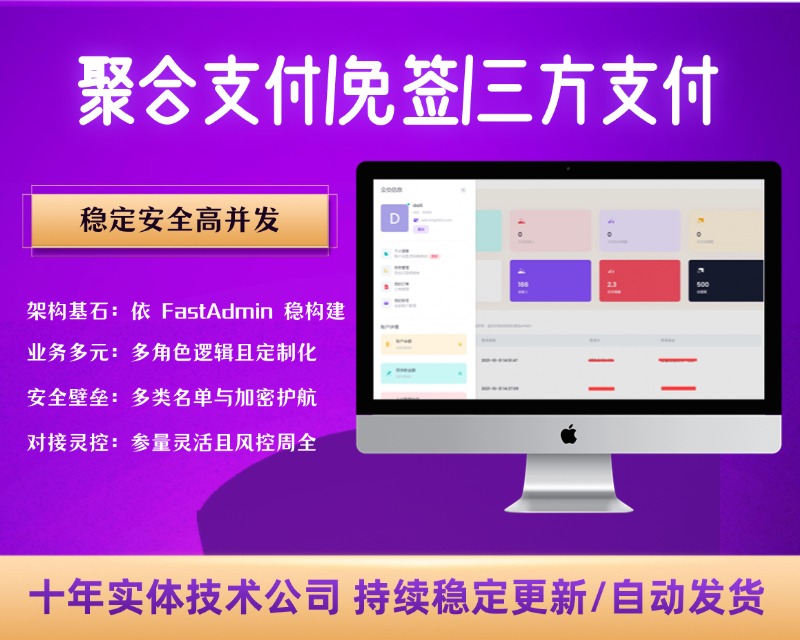 系统采用FastAdmin框架独立全新开发,安全稳定,系统支持代理、商户、码商等业务逻辑。